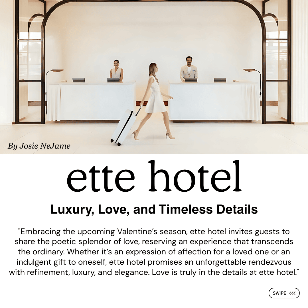Embracing the upcoming Valentine’s season, ette hotel invites guests to share the poetic splendor of love, reserving an experience that transcends the ordinary. Whether it’s an expression of affection for a loved one or an indulgent gift to oneself, ette hotel promises an unforgettable rendezvous with refinement, luxury, and elegance. Love is truly in the details at ette hotel.